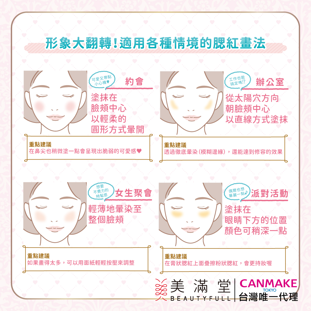 四色腮紅盤讓妳依據欲創造的妝感隨心搭配使用