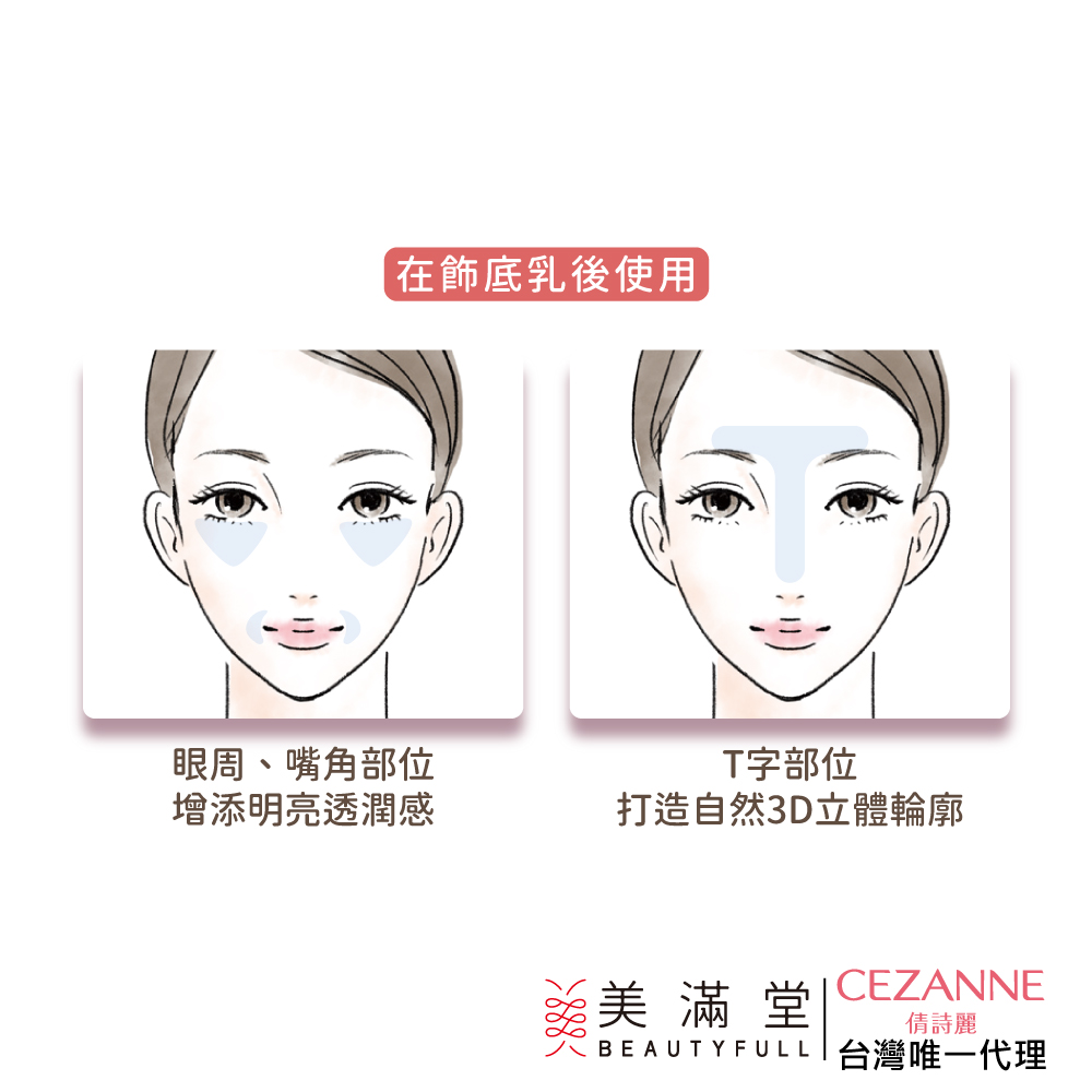 ★ 使用於T字部位,打造自然3D立體輪廓,如同打亮修容餅般的效果