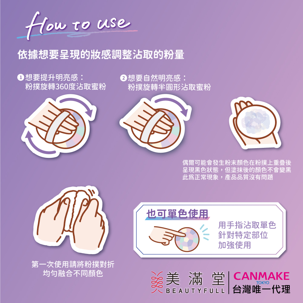 ☆ 第一次使用請將粉撲對折,均勻融合不同顏色