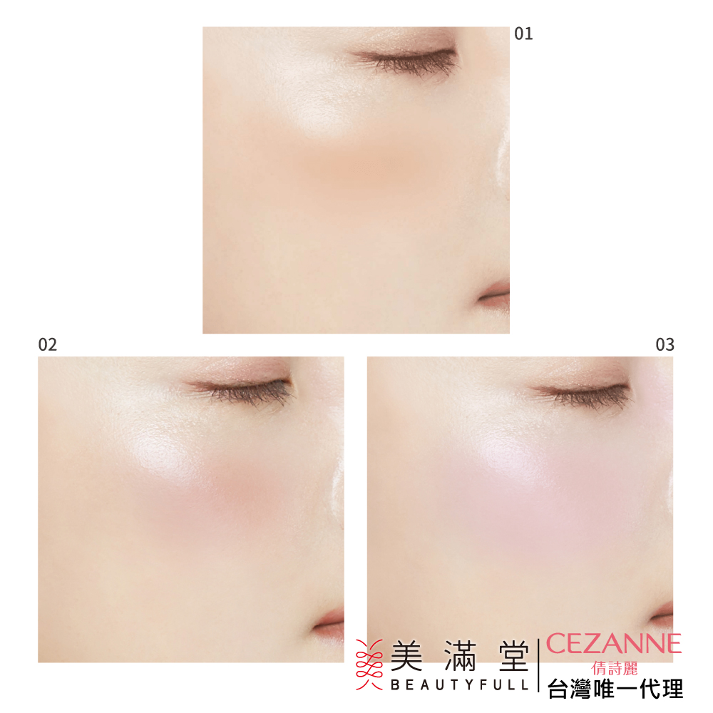 03 浪漫光芒 - 帶有輕微紅暈的淡粉色珠光, 打造柔和氛圍的雙頰。